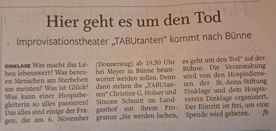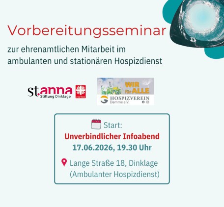 Bei Interesse können Sie sich auch gleich direkt unter 04443/892 201 umfassend informieren lassen oder Sie nutzen die "Hospizliche Sprechstunde", jeden Donnerstag in der Zeit von 16.00 - 18.00 Uhr.